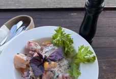 550 г • Картофельные вафли, семга, крем-чиз, микс-салат, томаты