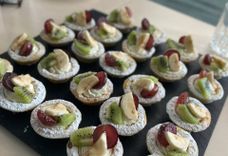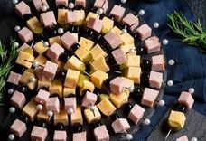 Канапе «По-провански» 8 шт (сыр, ветчина, маслина, маринованный огурец), канапе «Неаполь» 8 шт (тостовый хлеб, творожный сыр, пепперони, кукуруза бейби, маслина)брус киты с семгой 6 шт, брускетты с пармской ветчиной 6 шт
