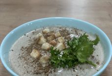 400 г • Шампиньоны, лук, картофель, сливки, оливковое масло, лук крисперс