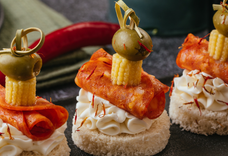 1500 г • Канапе «По-провански» 8 шт (сыр, ветчина, маслина, маринованный огурец), канапе «Неаполь» 8 шт (тостовый хлеб, творожный сыр, пепперони, кукуруза бейби, маслина), рулетики из тортильи : с цыпленком и соусом Терияки, с цыпленком и соусом цезарь, с ветчиной и сырным соусом, с лососем и соусом терияки