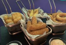 550 г • Нагетсы, луковые колечки, сырные палочки, картофель по деревенски, 3 соуса на выбор