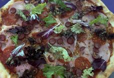 700 г • Соус из томатов, моцарелла фреш, микс-салат, томаты, соус песто