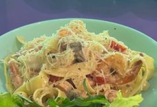 380 г • Паста фетучини, лосось, королевские креветки, сливочный соус