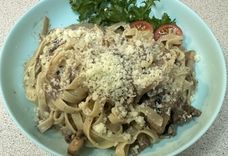 Паста, томленая говядина, соус демиглас, шампиньоны, сливки, пармезан 380г